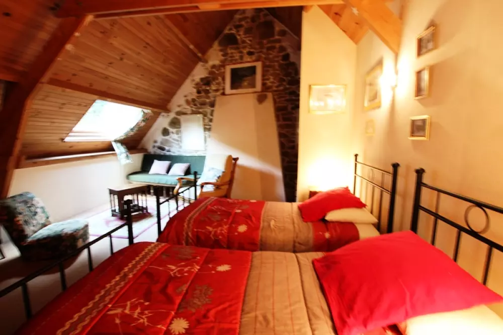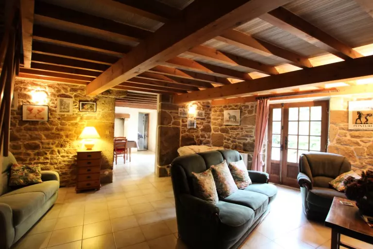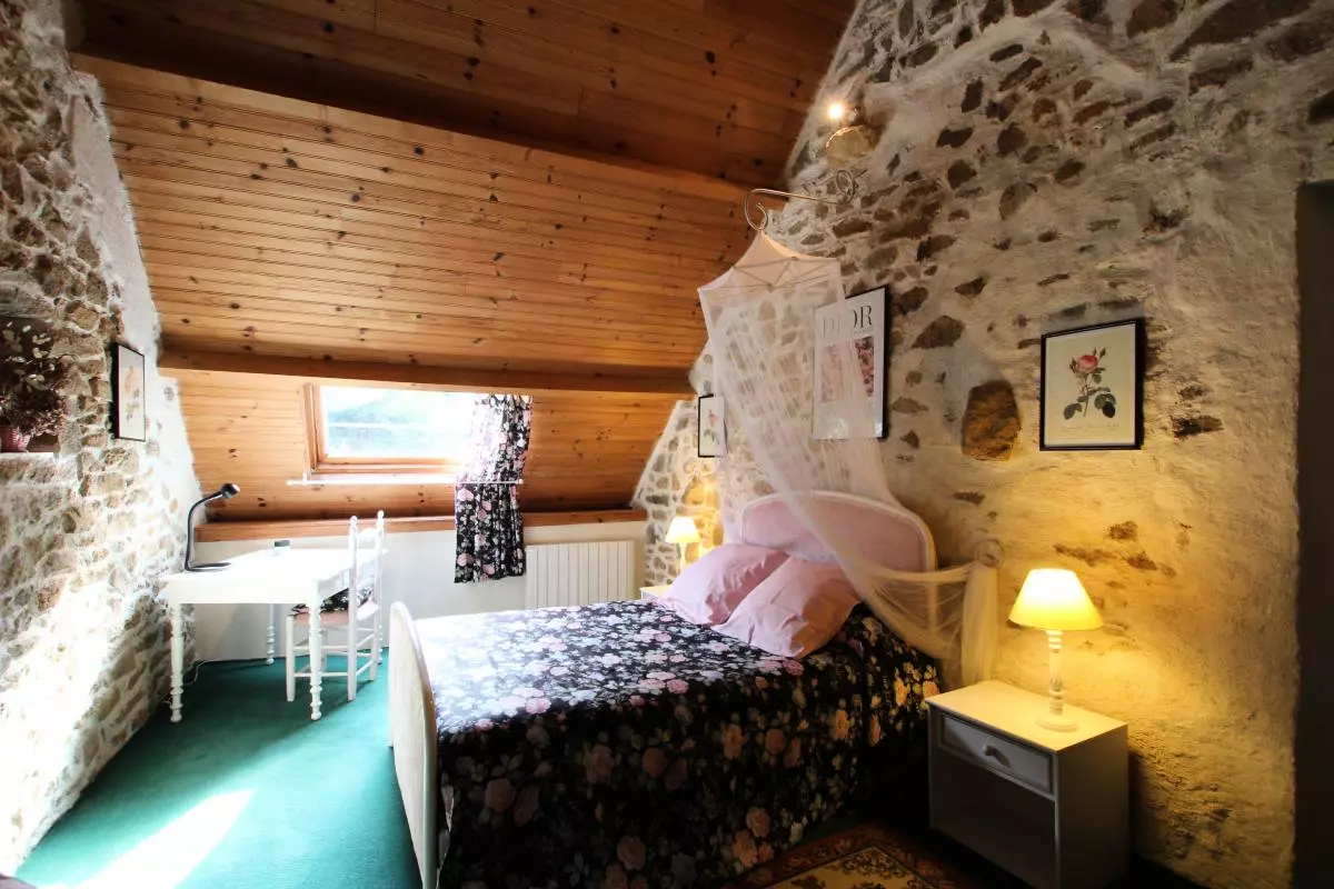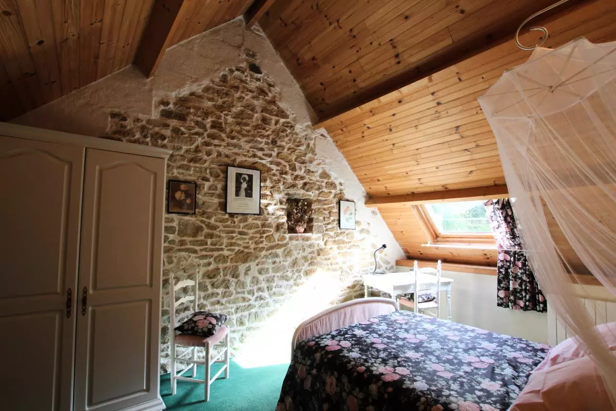 Maison indépendante. RdC : Cuisine (lave-vaisselle), Salle à manger avec cheminée (barbecue) Salon (avec cheminée et TV). Salle d'eau, WC. Etage : 2 chambres avec 1 lit 140. 1 chambre avec 2 lits 90. 2 lits bébé. Wc. Cellier extérieur avec lave-linge et sèche-linge. Draps et linge de maison non fournis. Service ménage en supp. Chauffage électrique en supp. Terrain clos privé. Terrasse. Salon de jardin. Barbecue. Maison en pierre avec un intérieur qui a gardé toute son authenticité par son mobilier et sa décoration. Edifié sur le flanc de la colline, ce gîte dispose d'un vaste terrain arboré en dénivellation. Calme assuré. Plage du débarquement à 30 km.