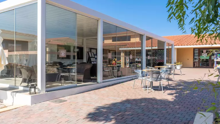 Bar, restaurant, pizzeria, marché, plaine de jeux, tennis et football court, animations pour adultes et enfants, école de plongée, école de surf
