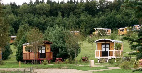 Les Roulottes des Monédières sont implantées sur un magnifique terrain vallonné de 3 ha en bordure d'un étang, en lisière d'un arboretum et de la « Maison de l'Arbre ».