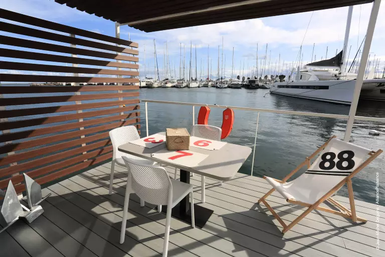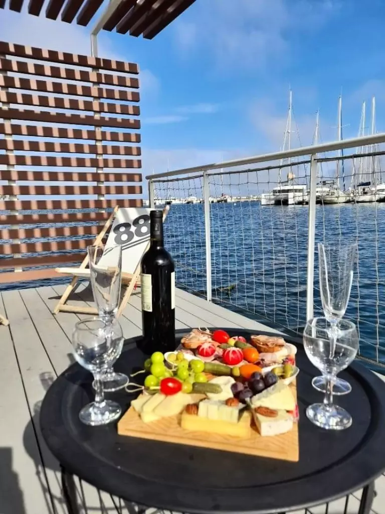 Un petit creux au cours de la journée ? Faites-vous livrer un plateau de coquillages ou encore une planche du Capitaine avec charcuteries et fromages. Vous pourrez également déguster une coupe de champagne ou tout simplement un bon verre de vin sur votre terrasse, en regardant les bateaux !