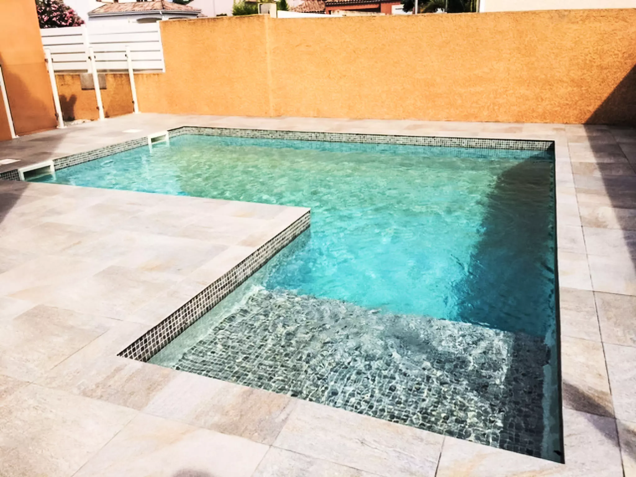 Agde à 4 km de Cap d'Agde: Villa "l'Occitane". En bordure de la localité, situation tranquille dans un quartier résidentiel, à 4 km de la mer. A usage privé: terrain 600 m2 (clôturé), jardin entretenu (clôturé), piscine rectangulaire, cloturée (6 x 4 m, profondeur 1 - profondeur 50 cm, disponibilité saisonnière: 15.Jun. - 30.Sep.) avec systeme d'électolyseur au sel. Douche extérieure, place de parking sur le terrain, garage individuel, parking public possible dans la rue. Magasins 500 m, centre commercial 1 km, arrêt de bus "Centre Hospitalier" 700 m, plage de sable 4 km. Terrain de golf (27 trous) 6 km.