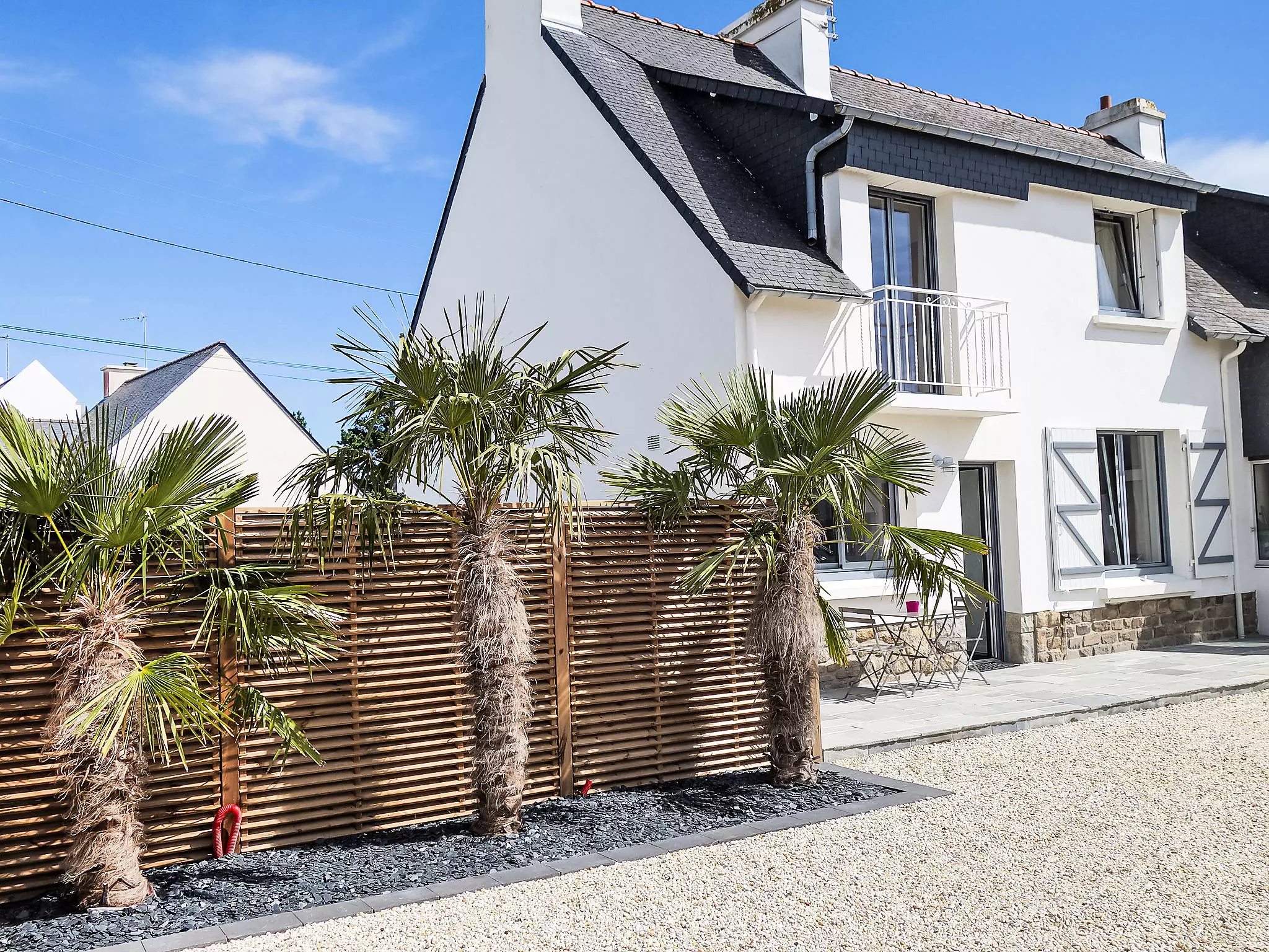 Maison à 2 apts "Les Elfes", rénovée en 2015. Au centre de Carnac plage, situation centrale, animée, à 600 m de la mer, à, de la plage, dans une rue. En commun: terrain (clôturé). A usage privé: jardin avec pelouse, place de parking sur le terrain. Magasins 300 m, restaurant 200 m, plage de sable "Grande plage de Carnac" 600 m, centre thermal "Thalassothérapie de Carnac" 250 m. Terrain de golf (18 trous) 10 km, ecole de voile 450 m. Attractions à proximité: Les alignements de Carnac 2 km, La Trinité sur mer 4 km, Presqu'ile de Quiberon 20 km, Vannes 30 km, Lorient 55 km. Veuillez noter: night-club/discothèque à proximité.