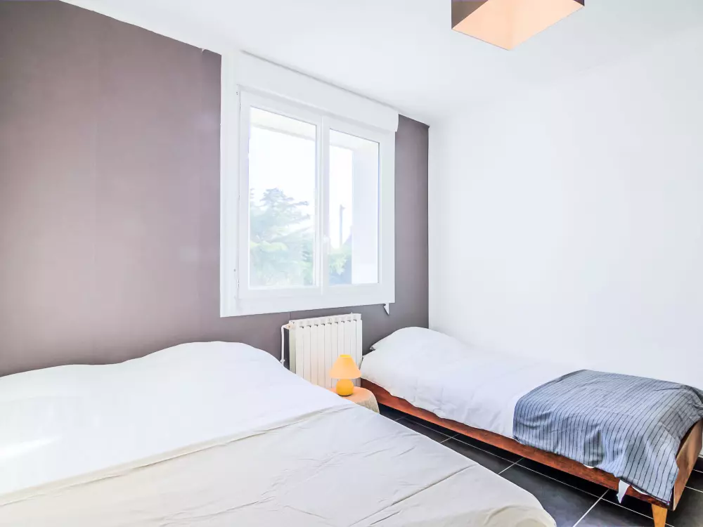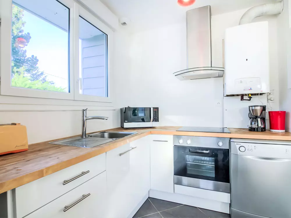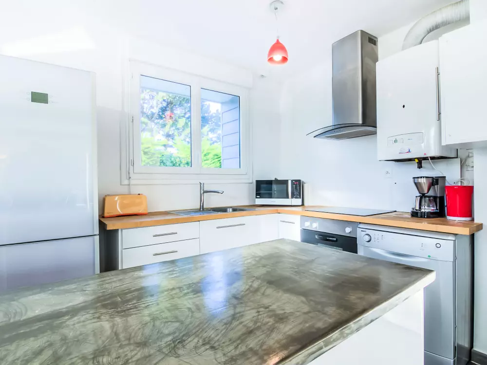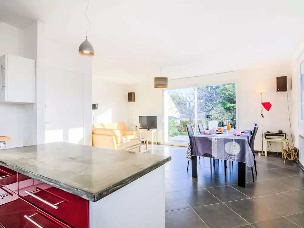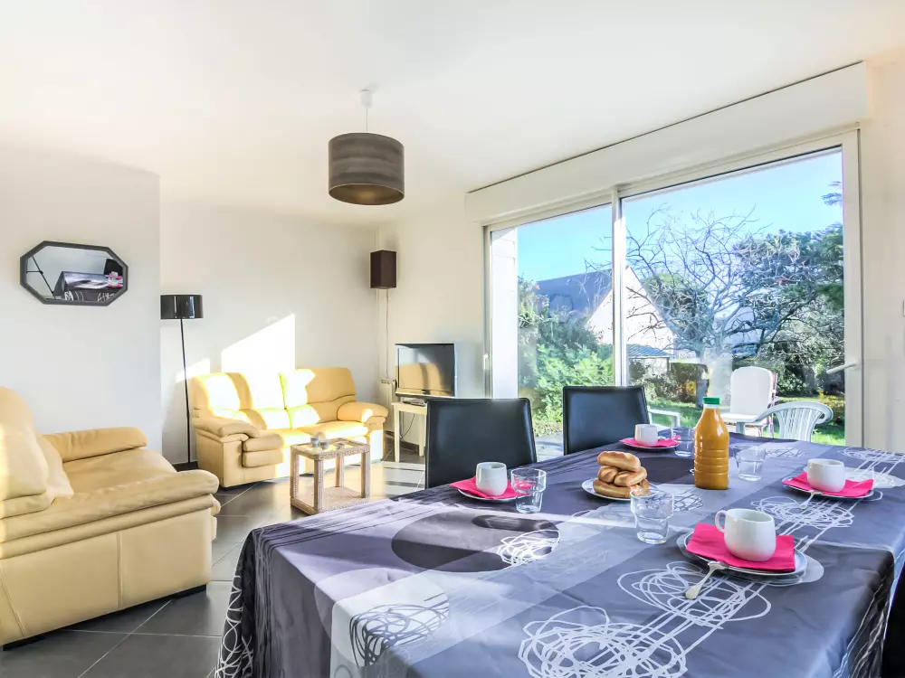 Maison individuelle "Kermahé". Dans la localité, à 600 m de la mer, à 600 m de la plage. A usage privé: terrain 700 m2 avec pelouse et arbres, place de parking sur le terrain. Magasins, magasin d'alimentation, restaurant 550 m, arrêt de bus 1.5 km, gare ferroviaire "Auray" 23 km, plage de sable "Kermahé" 600 m. Port plaisance 5.1 km, terrain de golf (18 trous) 21 km, ecole de surf 1.5 km, ecole de voile 1 km. Attractions à proximité: Casino de Quiberon 5.8 km, Thalasso 6.4 km, Alignements de Carnac 15 km, La Trinité sur Mer 22 km, Vannes 42 km, Belle-Ile-en-Mer. La remise des clés a lieu à l'agence Interhome de Quiberon, 6 km.