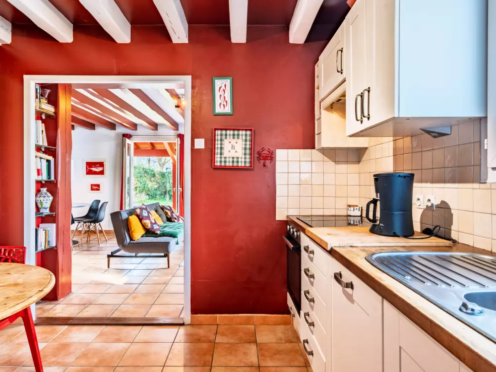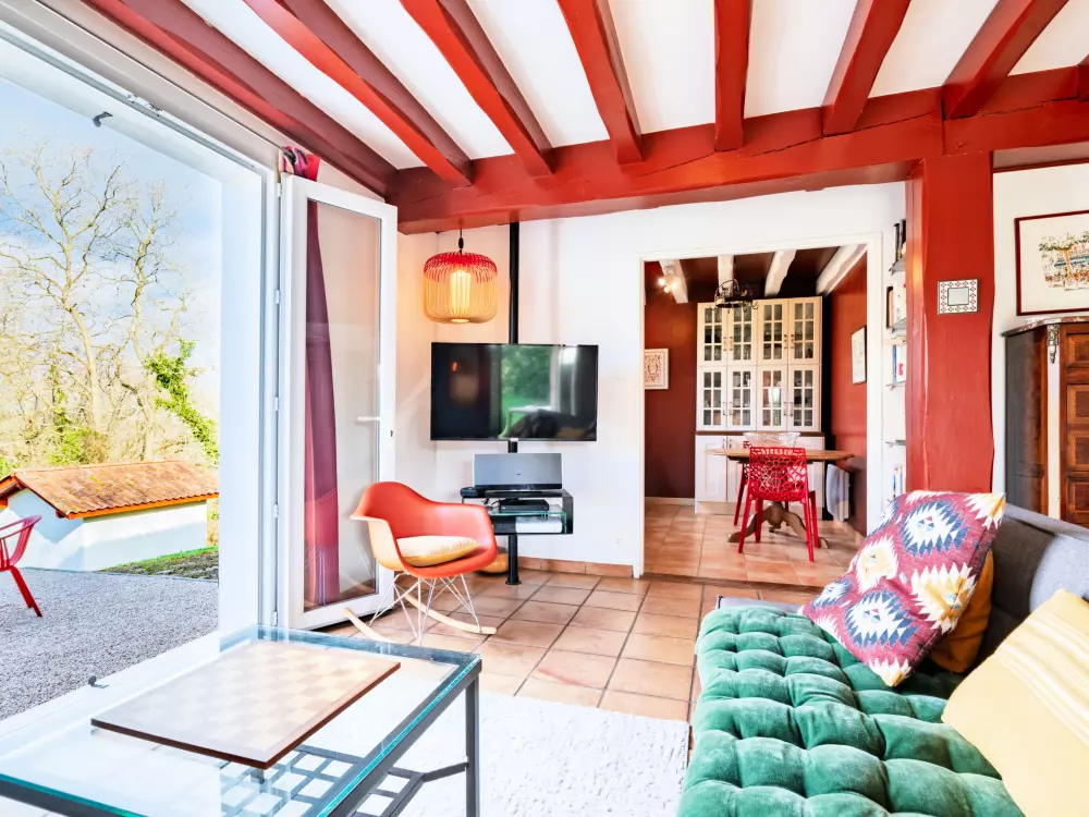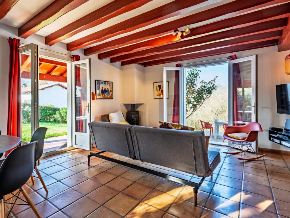 St Pée sur Nivelle à 15 km de Saint Jean de Luz: Maison individuelle "Eki Alde". À 15 km de la mer, à 5 km du lac, à 15 km de la plage. A usage privé: terrain 2'300 m2 (clôturé), place de parking (pour 3 voitures). Magasin d'alimentation 1.5 km, supermarché 2 km, restaurant 1.5 km, boulangerie 1.5 km, arrêt de bus 5 km, plage de sable "Saint Jean de Luz" 15 km, piscine 11 km, centre thermal "Cambo les Bains" 16 km, baignade en lac 5 km. Terrain de golf (18 trous) 11 km, tennis 11 km, centre équestre 11 km. Région de randonnées: La Rhune 12 km, Espagne 13 km. La remise des clés a lieu à l'agence Interhome de Saint Jean de Luz, 13 km.