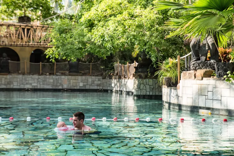 L'Aqua Mundo est l'espace emblématique Center Parcs : un paradis aquatique subtropical avec piscine à vagues, toboggans et rivière sauvage.