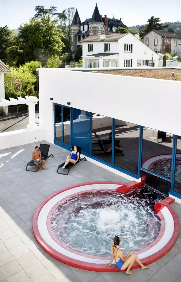 Élégant et raffiné, le spa thermal vous accueille dans un environnement chaleureux inspiré par la beauté des volcans d'Auvergne. Il se veut 100% naturel, grâce à l'alliance subtile des bienfaits de l'eau minérale thermale de Châtel-Guyon aux actifs végétaux de nos produits cosmétiques estime&sens. Profitez en complément de vos formules de soins de l'accès à ses équipements de bien-être (bassin de détente, bain à remous extérieur…).
