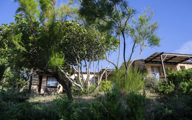 Située entre mer et montagne, dans une propriété entièrement piétonne, arborée et fleurie de 6 hectares, à 200 m du centre du village de Serra di Ferro, la Résidence Alba Rossa dispose d'un cadre exceptionnel et d'une vue panoramique sur la baie de Cupabia, site Natura 2000 : le point de départ idéal pour découvrir la Corse du Sud !