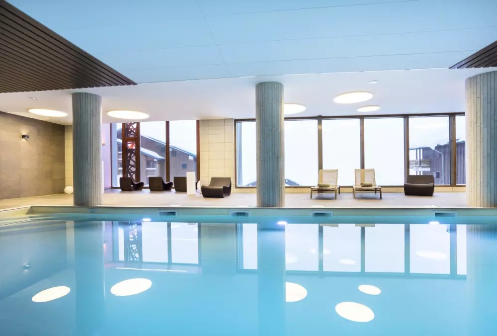 Venez passer un bon séjour en profitant de sa piscine intérieure chauffée et d'autres services qui vous attendent: club enfants, spa (sauna, hammam, jacuzzi), séances aquatiques, ménage, prêt de matériel et jeux...