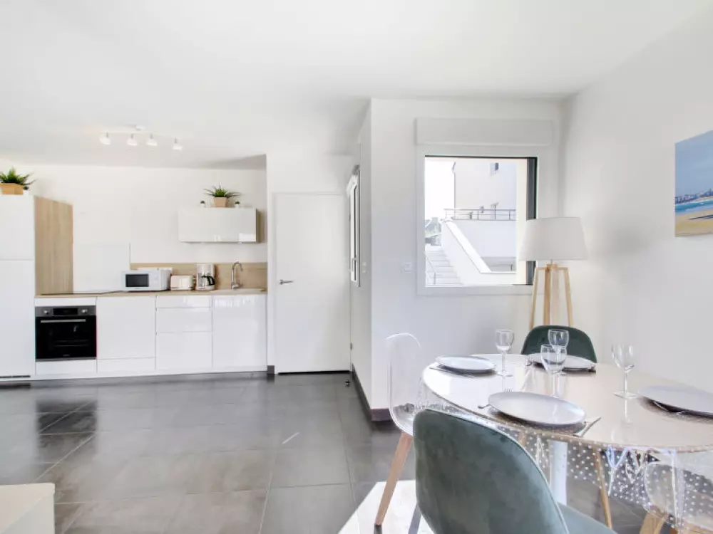 Belle résidence moderne "Domaine d'Augustin", année de construction 2019. Dans le quartier de Rotheneuf, situation tranquille dans un quartier résidentiel, zone avec peu de trafic, à 450 m de la mer, à 800 m de la plage. A usage privé: petit jardin (clôturé) avec pelouse. Terrasse, meubles de jardin. Infrastructures de la Maison: réduit pour bicyclettes. Place de parking. Magasin d'alimentation 1.5 km, supermarché 1.5 km, boulangerie 900 m, arrêt de bus 450 m, gare ferroviaire 5 km, ferry 7 km, plage de sable 450 m, piscine couverte 8 km, centre thermal "Thermes marins de saint Malo" 3 km. Port plaisance 8.8 km, tennis couvert 6.9 km. Attractions à proximité: Grand aquarium de saint Malo 8.5 km, Cancale 11 km, Dinard 16 km, Dinan 36 km, Le mont saint Michel 43 km, Intra Muros 5.5 km. La remise des clés a lieu à l'agence Interhome de Saint Malo, 4 km.