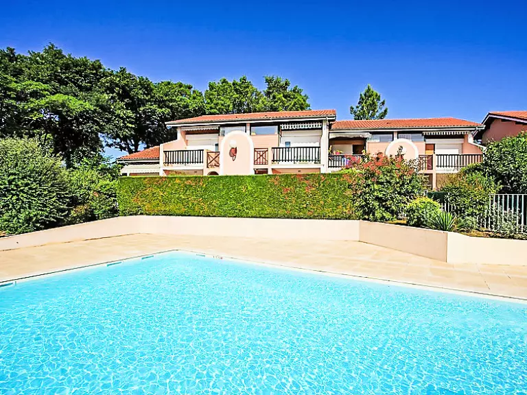 Capbreton à 2 km de Hossegor: Résidence "Le Gallia". À 1 km de la mer, à 5 km du lac. En commun: piscine (disponibilité saisonnière: 01.Jul. - 15.Sep.). Place de parking. Magasins 800 m, arrêt de bus "ciagles" 1.6 km, plage de sable 1 km. Terrain de golf (18 trous) 4.5 km.