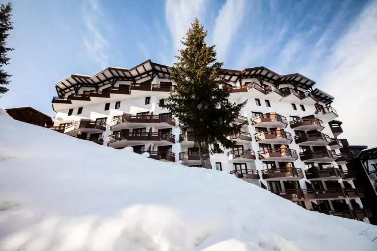La Résidence Le Grand Bois** est située au cœur de la station de ski de Courchevel La Tania en Savoie. Elle est composée de 2 bâtiments étagés le long de la pente, et accessible « ski au pied » ! Une passerelle piétonne permet d'accéder au centre station en moins de 2 minutes.