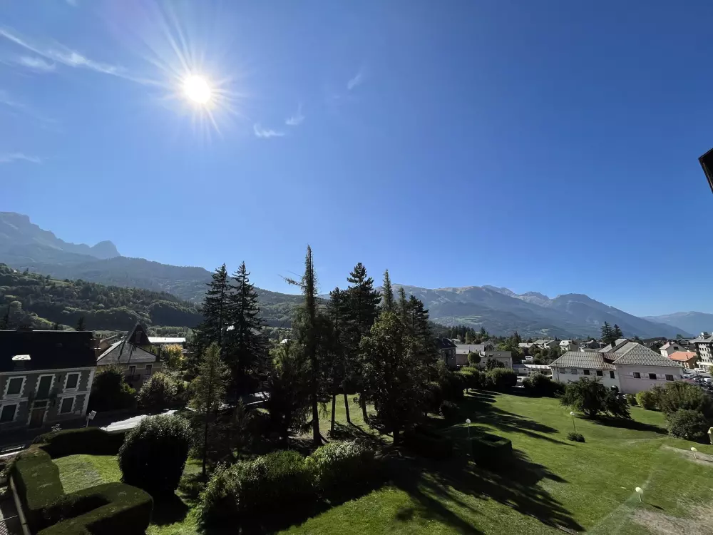 Dans le village de Barcelonnette, en plein centre ville dans une belle résidence avec un parc arboré et très calme,