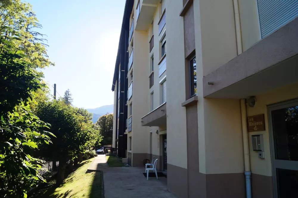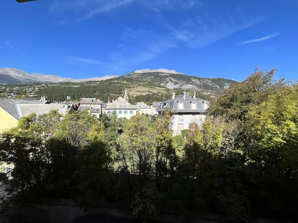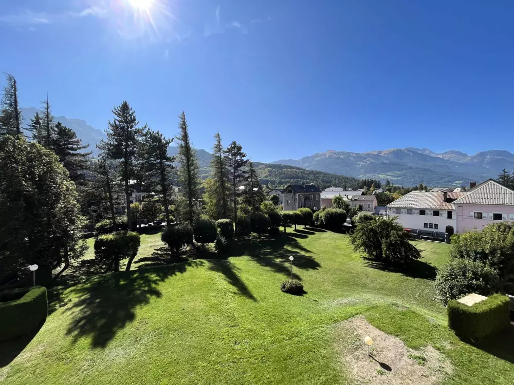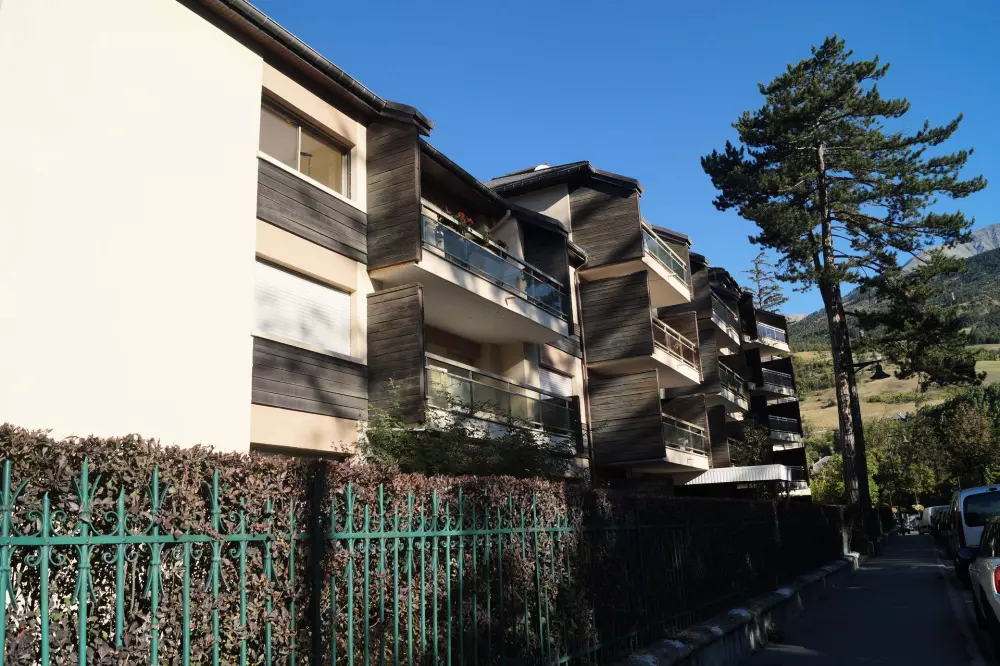 Dans le village de Barcelonnette, en plein centre ville dans une belle résidence avec un parc arboré et très calme.