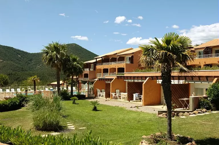 La résidence est implantée au milieu de jardins fleuris avec piscine, et les appartements sont répartis dans 2 bâtiments de 2 étages (sans ascenseur) répartis en 4 petits hameaux.