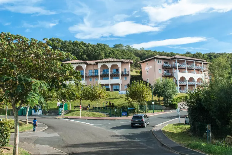 Cet ensemble de 7 petits bâtiments à l'architecture andalouse offre une vue admirable sur la baie de Saint-Jean-de-Luz gardée par le Fort de Socoa et vous propose des appartements avec terrasse/loggia tout équipés (cuisine, coin repas, wifi…), une piscine, un parking privé.
