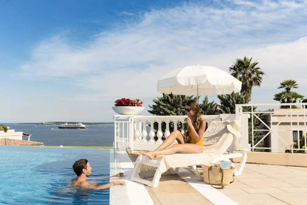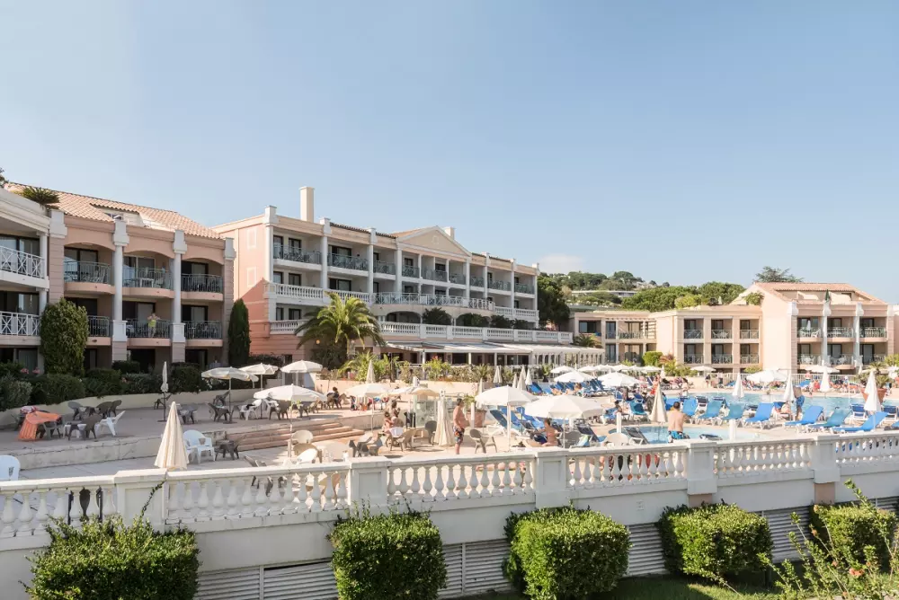 Selon les bâtiments, la résidence offre de nombreux points de vue comme sur la baie de Cannes et les Îles Lérins, ou encore sur les roches rouges de l'Estérel.