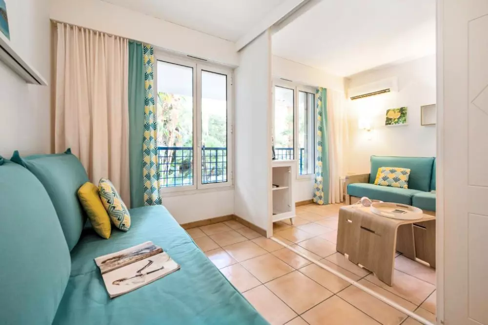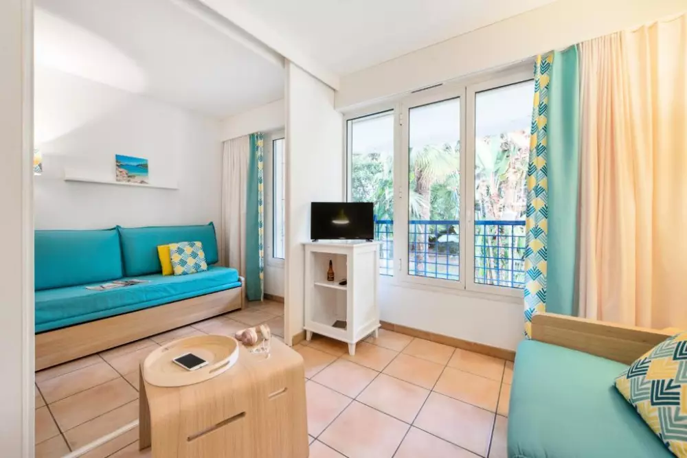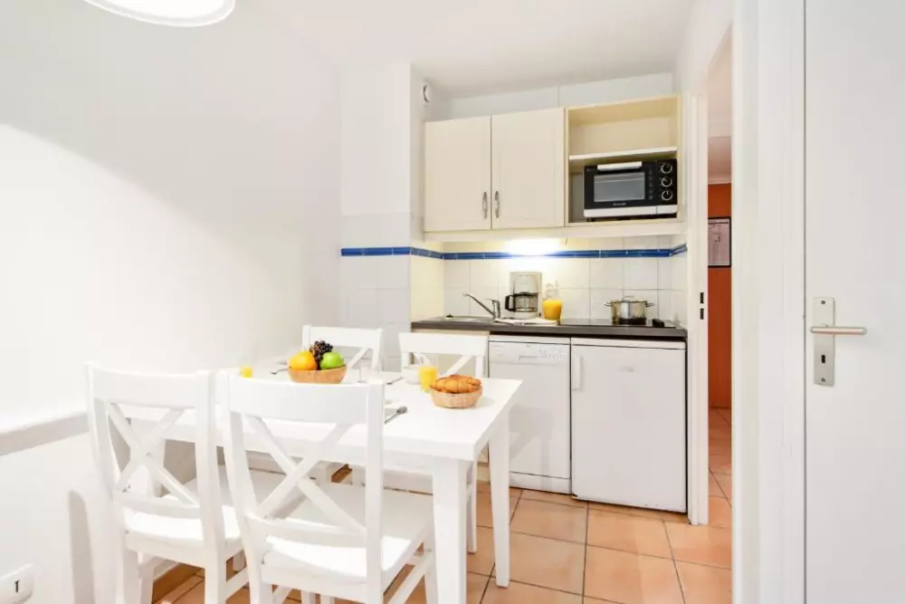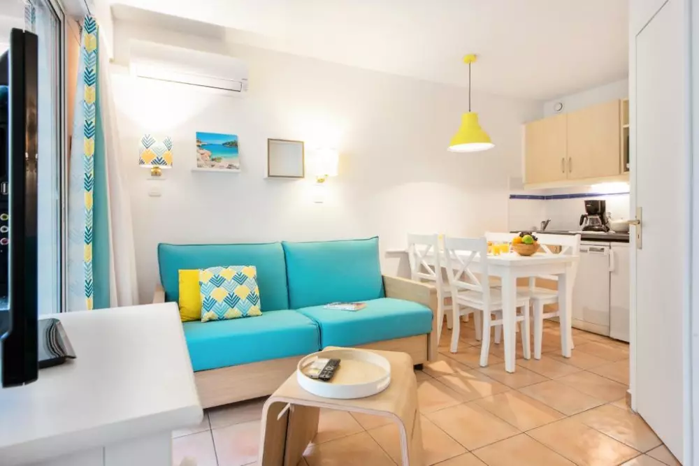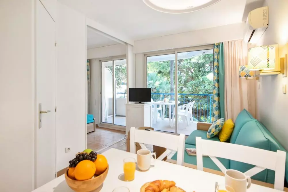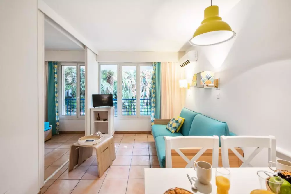 Vous profiterez du calme d'un petit parc dans une résidence aux appartements climatisés et confortables.