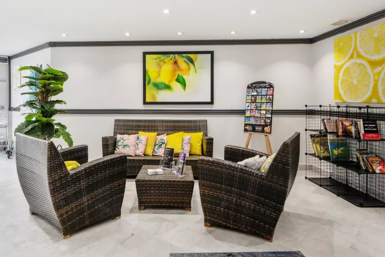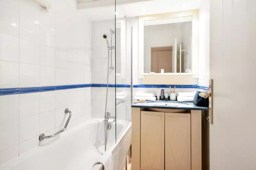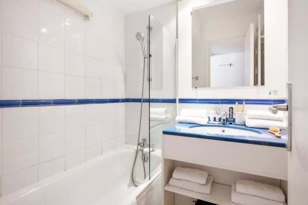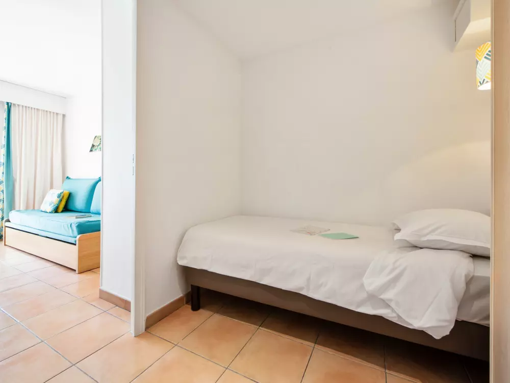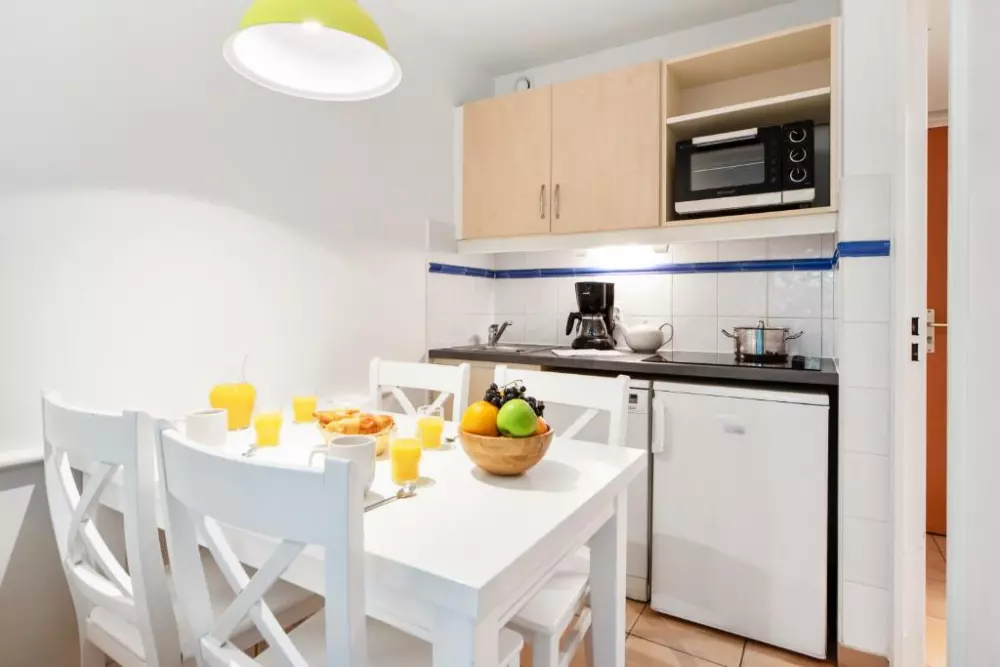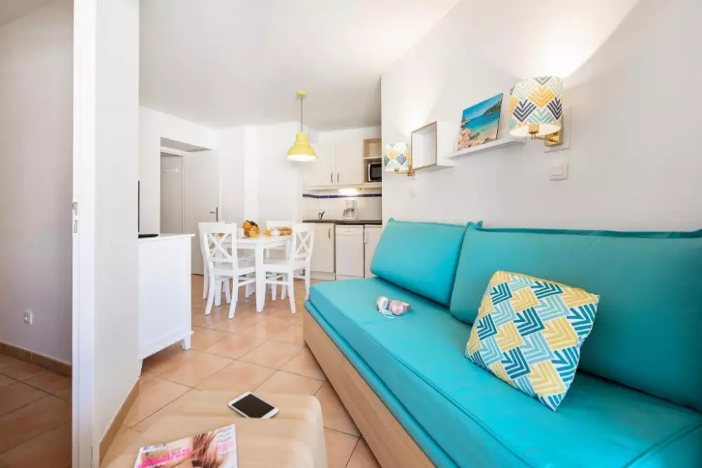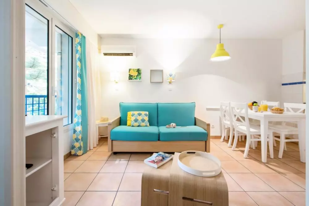 Vous profiterez du calme d'un petit parc dans une résidence aux appartements climatisés et confortables.
