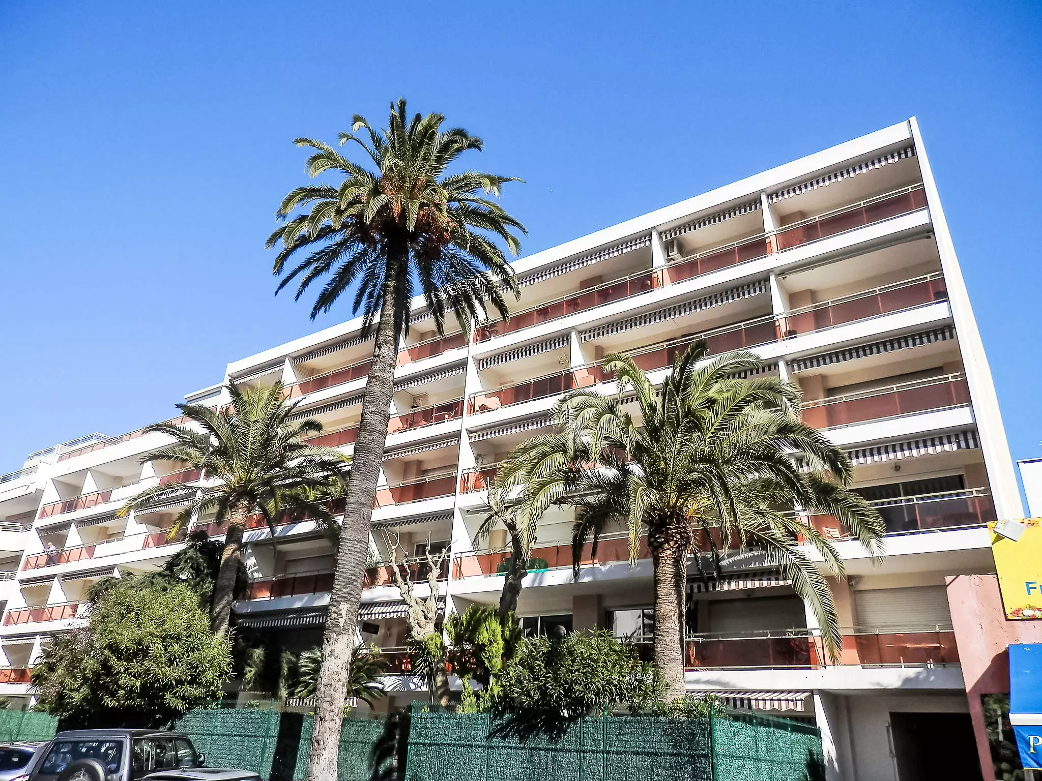 Cannes: Résidence "Villa Lerins", de 5 étages. Dans le quartier de Palm Beach, à 2 km du centre de Cannes, à 100 m de la mer. Infrastructures de la résidence: ascenseur. Place de parking ou garage pour voiture de petite - moyenne dimension. Magasin d'alimentation, restaurant 100 m, arrêt de bus 50 m, gare ferroviaire "Cannes" 3 km, plage de sable 100 m. Ecole de voile 300 m. Attractions à proximité: Croisette 200 m, Palais des festivals 3 km, Casino Palm Beach 200 m. Veuillez noter: D'autres appartements sont également proposés à la location dans cette maison de vacances.