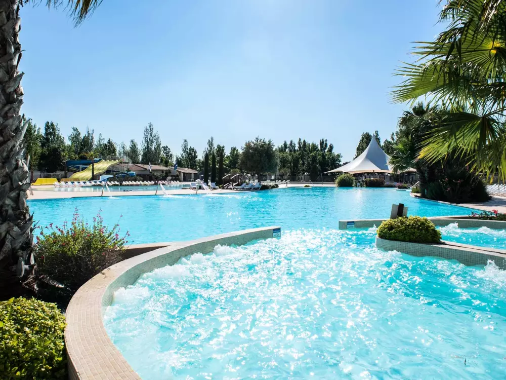 Vous serez séduit par le complexe aquatique bordé par des palmiers avec la sublime piscine lagon, le toboggan et les pistes de glisse, la splashzone, et les banquettes balnéo.
