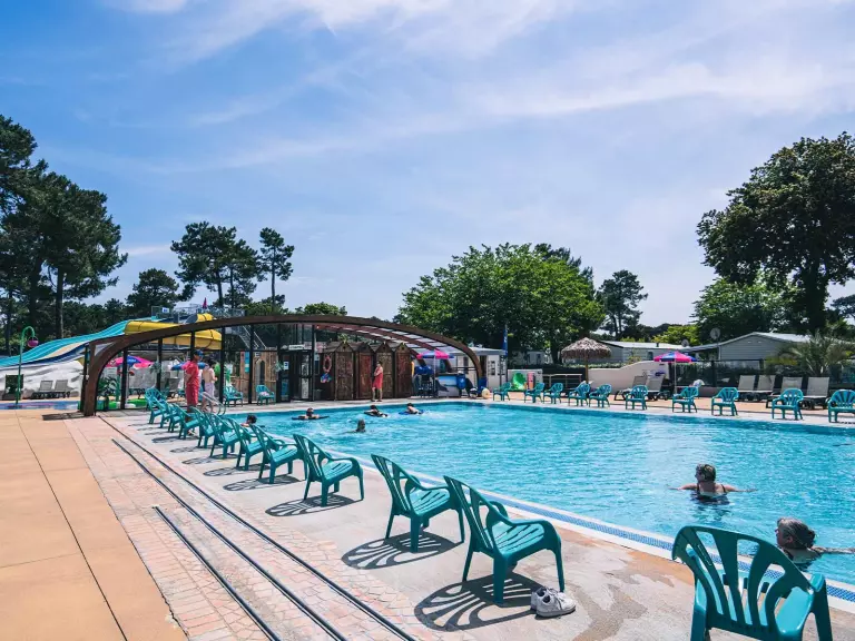 une piscine extérieure chauffée et recouvrable