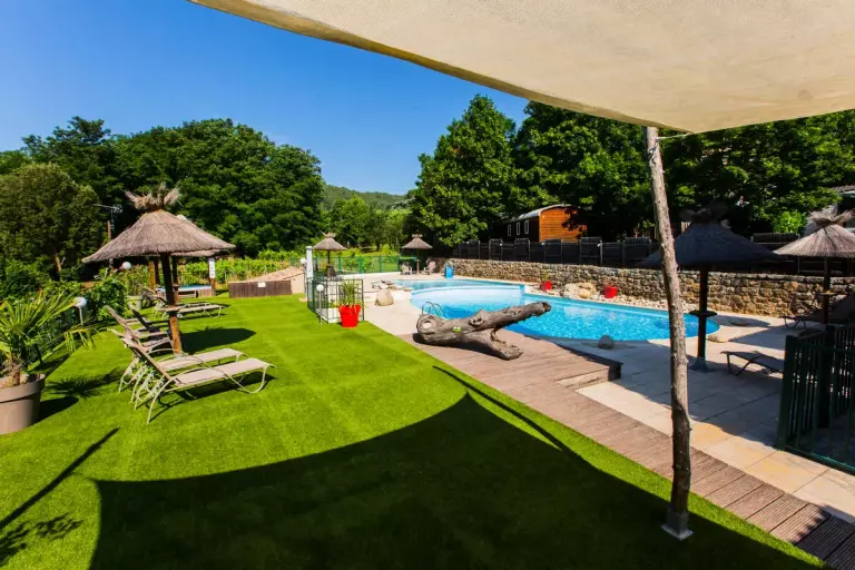 Profitez d'un cadre typiquement Ardéchois, ombragé par des châtaigniers centenaires. Le cœur du camping bat autour de sa magnifique piscine paysagée à débordement et de ses terrasses solarium, idéales pour la détente. Outre les terrains de pétanque et de football, l'établissement propose un restaurant-pizzeria convivial et un espace bar, c'est un véritable lieu de rencontre, où vous pourrez également déguster des produits locaux et régionaux. C'est l'endroit parfait pour se ressourcer à son propre rythme.