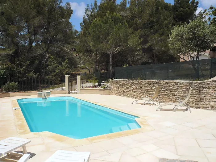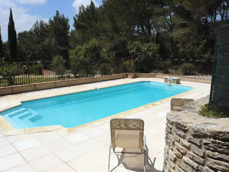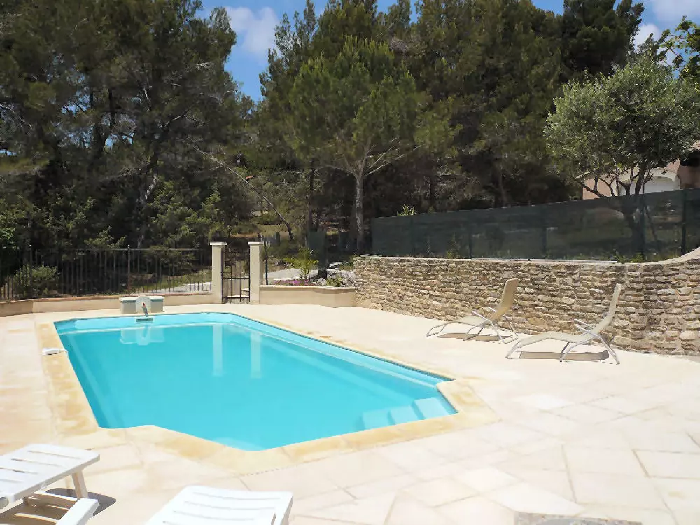 La piscine chauffée, commune de Buisson, est située en contre bas de la maison principale.