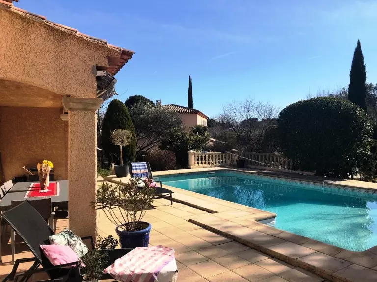 D'une superficie de 170 m² et sur un terrain d'environ 2000m² constitué de garrigue et de pinède, cette villa est située à quelques minutes à pied du centre du village de Fuveau dans un quartier calme et résidentiel, proche de la forêt. Profitez de la jolie piscine extérieure pour agrémenter votre séjour. A 2 minutes de la villa, club de tennis avec courts extérieurs et couverts, salle de musculation et club de fitness. De quoi profiter un maximum de vos vacances !
