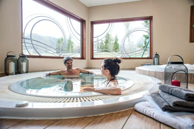 Le village de vacances dispose d'une réception, un restaurant avec vue panoramique, un bar, un salon avec cheminée, une salle TV, un sauna, un hammam, une buanderie, un parking. Toutes les chambres et appartements ont été rénovés entre 2004 et 2006.