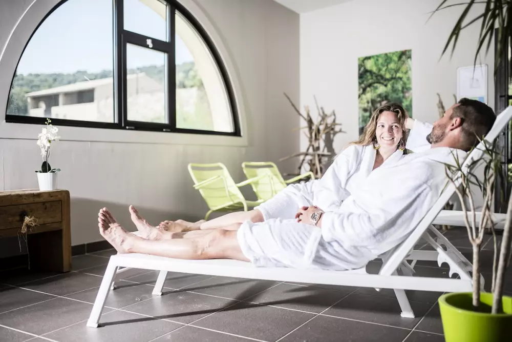 - Sur le Village Club, espace “Détente et Bien-Être” avec sauna, hammam, bains à remous, salle de repos avec tisanerie et solarium, massages* esthétiques ou de confort.