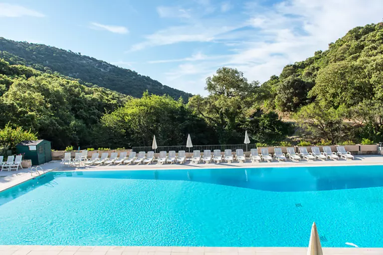 - Sur le Village Club, superbe piscine extérieure et bassin de faible profondeur pour la baignade des enfants, chauffés et ouverts d'avril à novembre (selon conditions climatiques) avec grande plage-solarium (serviettes non fournies).