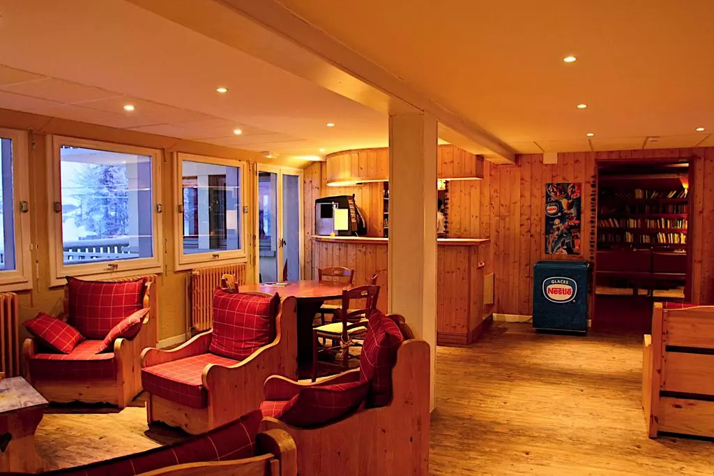 Ce chalet familial comporte l'ensemble des espaces de vie : restaurant, salle d'animation, bars cheminée, bibliothèques, salon télévision sont accessibles aux personnes à mobilité réduite.
