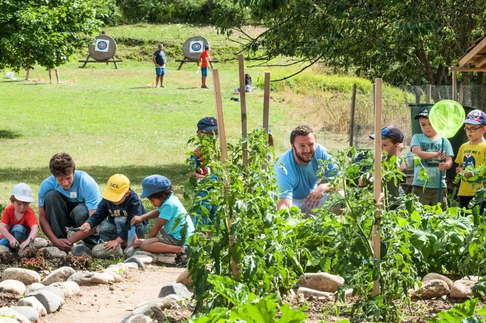 La possibilité de déjeuner avec les animateurs pour les 3 mois - 13 ans Jardinage au potager et rencontre avec les animaux de la mini-ferme avec les animateurs