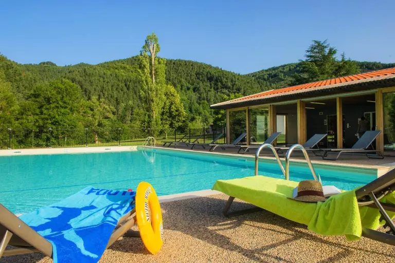 Piscine plein air chauffée avec pateaugeoire