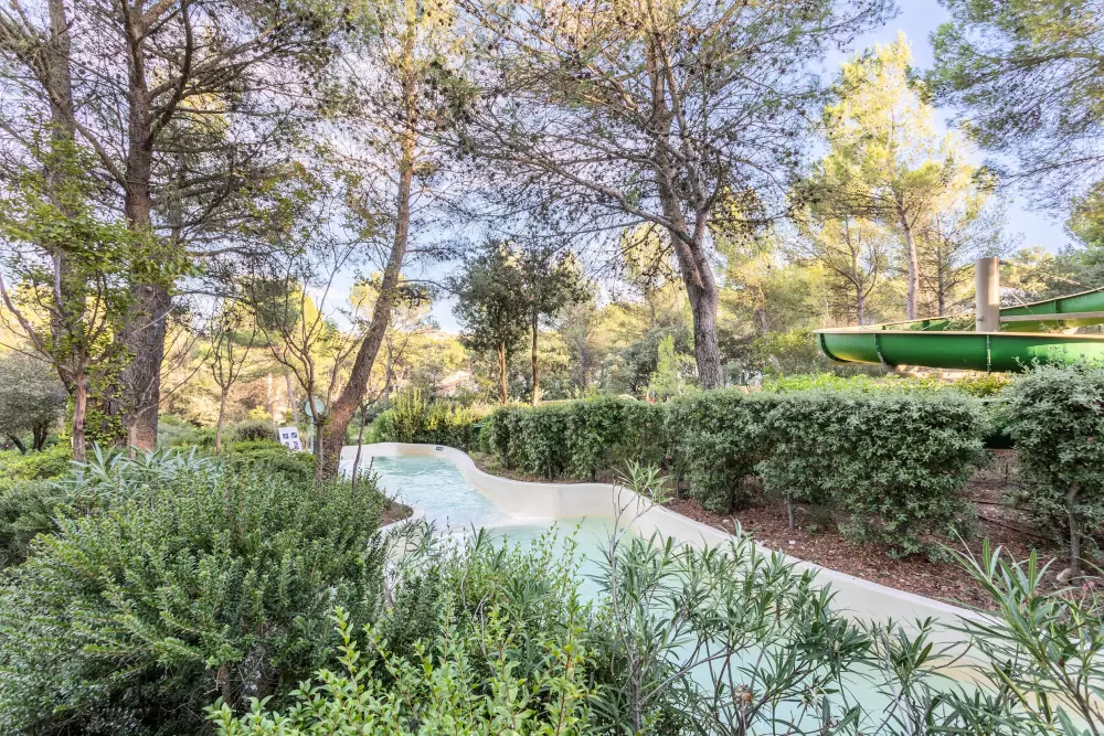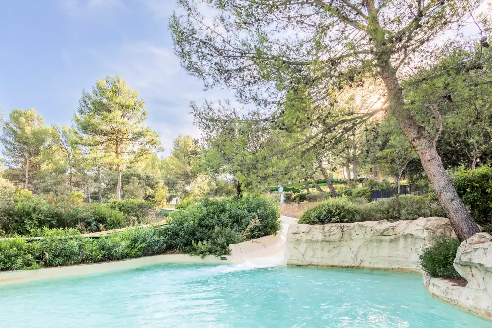 Ici, la Provence rime aussi avec abondance. Les espaces aquatiques sont répartis dans tout le village et sont adaptés à toute la famille : détente au bord d'une piscine chauffée avec plage aménagée, glissades sur le double toboggan Fantasy Racer, descentes de la rivière sauvage, piscine à vagues, pataugeoire avec jeux d'eau et bien d'autres encore. (En septembre, seulement la piscine des Rochers sera ouverte).